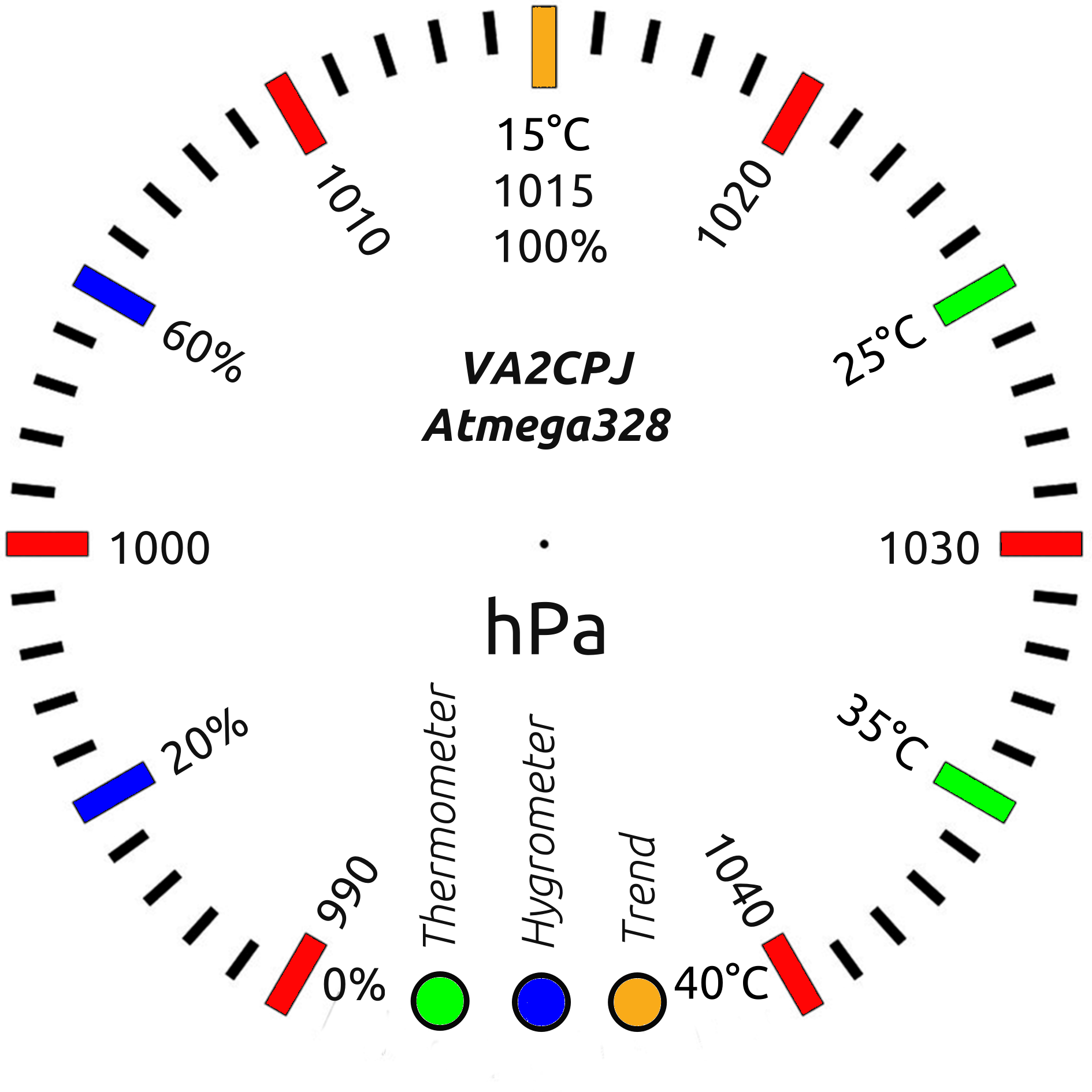Au démarrage le système exécute une rotation complète si le module BME280 est connecté suivit d’une pause de 30 secondes permettant de d’ajuster l’aiguille sur 1015 hPa, après la première mesure